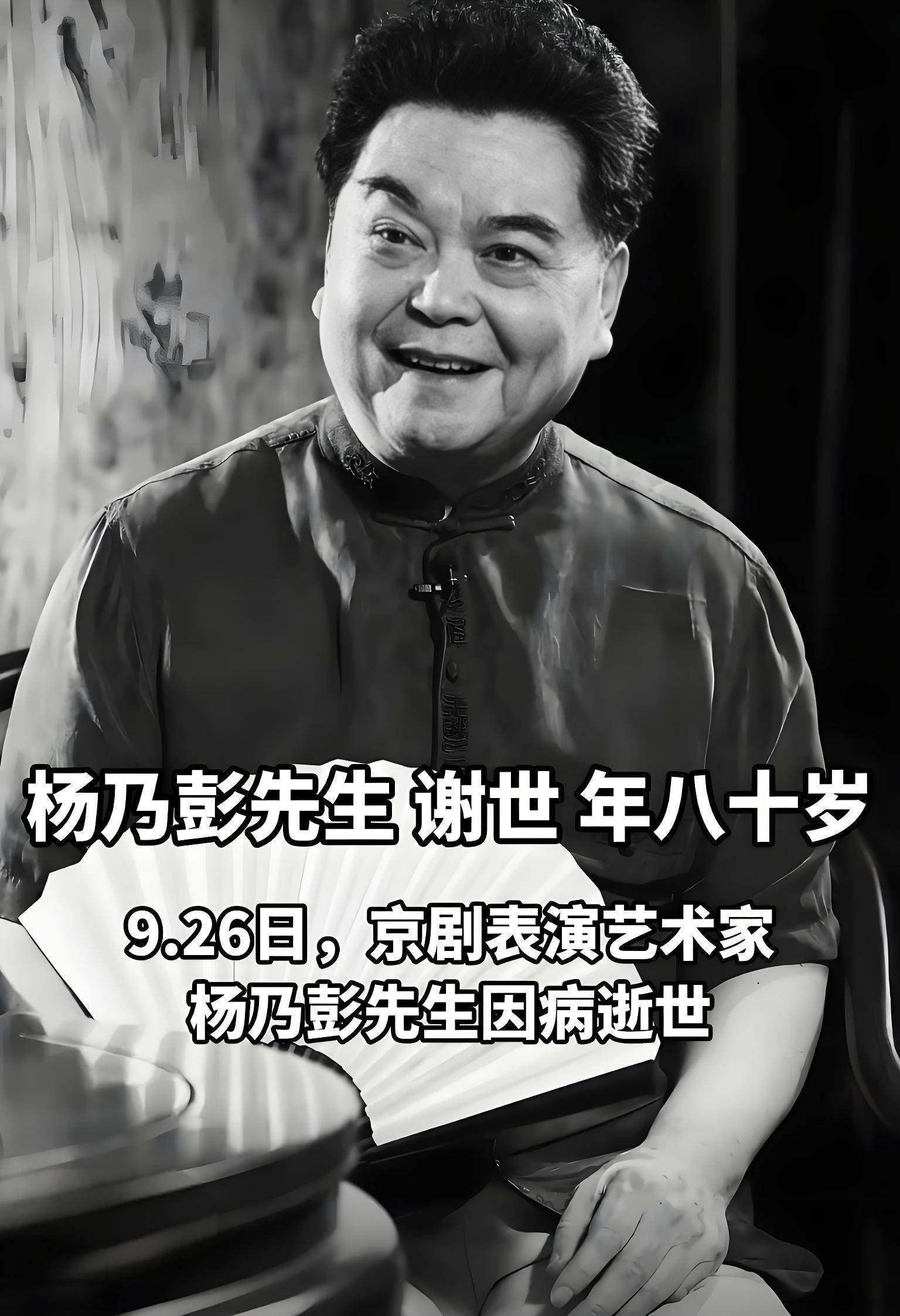 2025年9月26日,著名京剧表演艺术家杨乃彭在天津病逝,享年80岁。