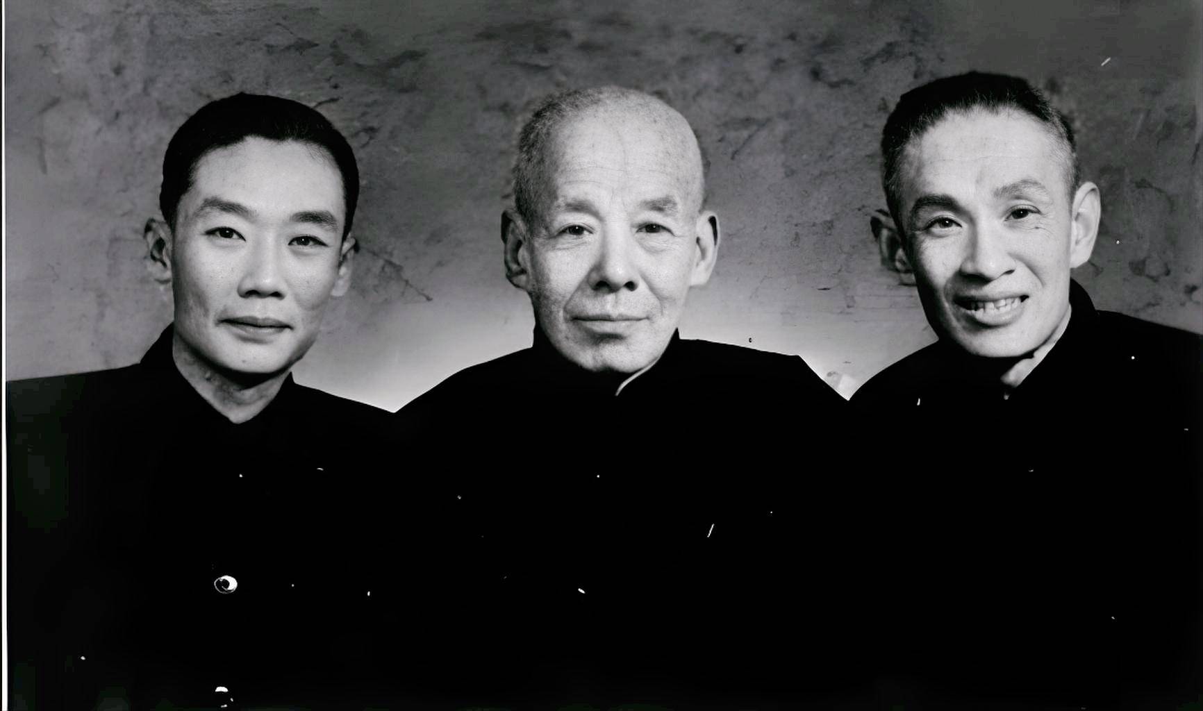 左起:杨宝森、鼓师杭子和、杨宝忠