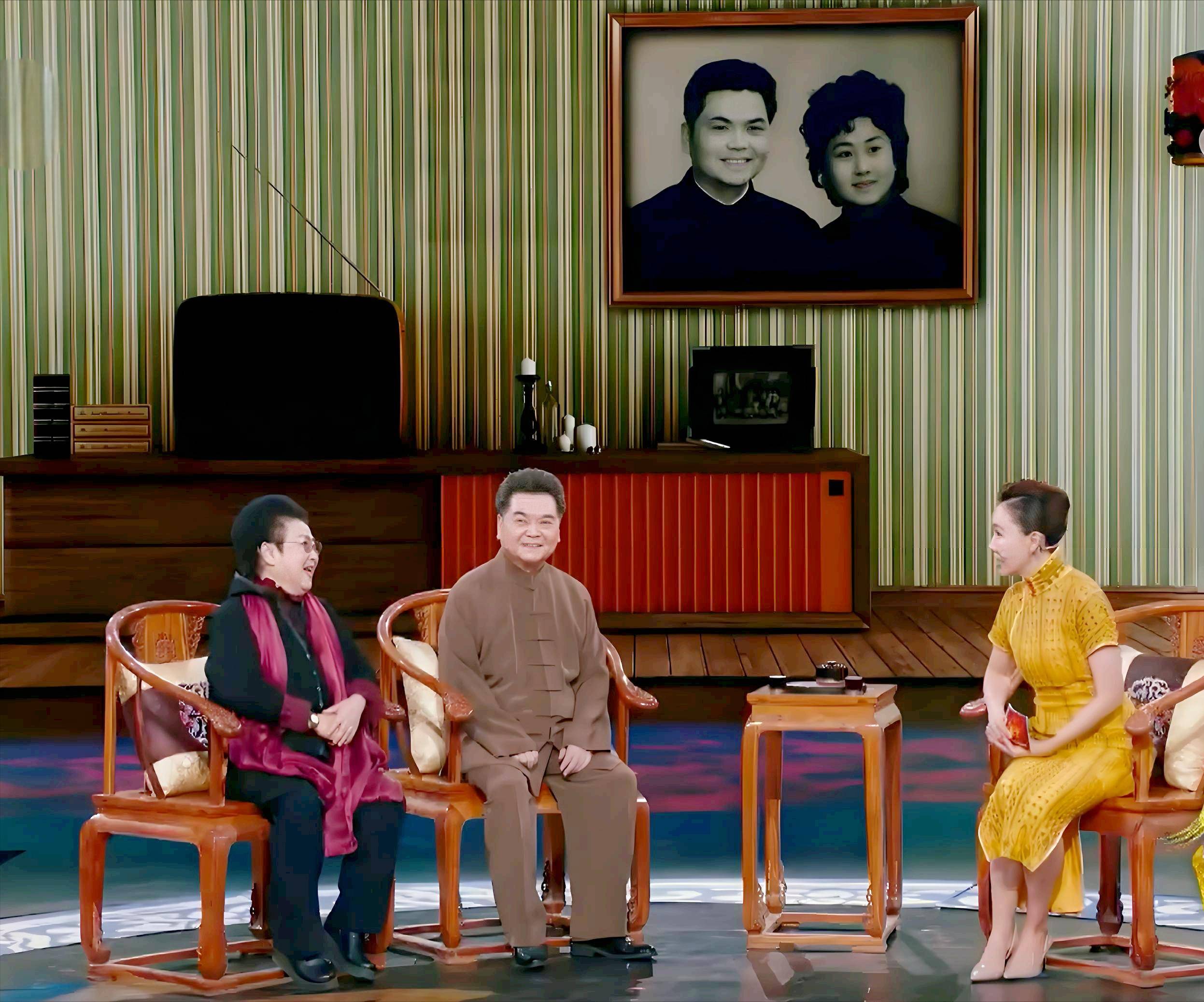 在主持人董艺的引导下,夫妻俩讲述了相识相爱的经过,及风风雨雨的婚姻历程,默契和恩爱溢于言表。