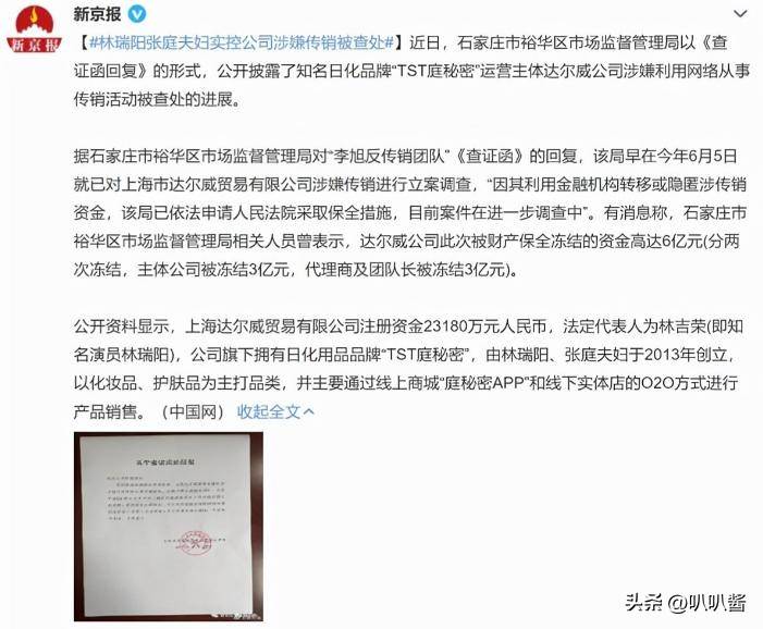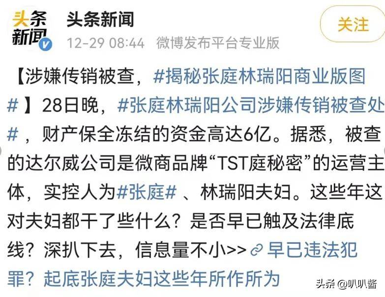 张庭夫妇公司涉嫌传销被查,而在2022年4月7日,公司被认定为传销。