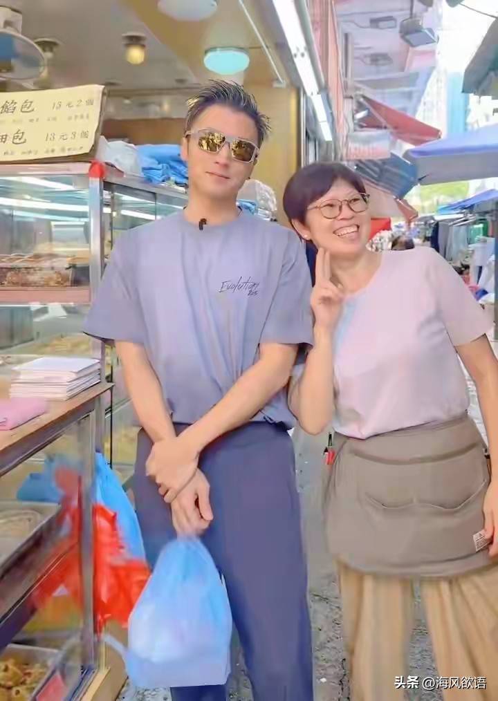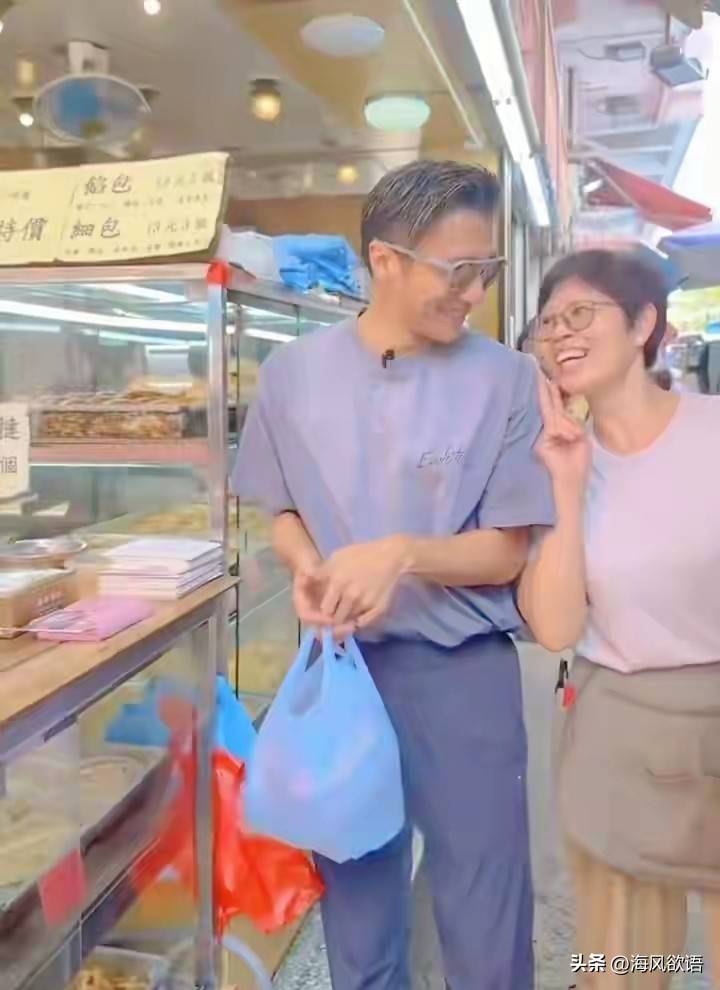 拍照时老板娘笑得眼睛都眯成了缝,双手比耶的动作透着藏不住的开心;谢霆锋也没敷衍,嘴角弯着自然的弧度,眼神温和,一点不僵硬。