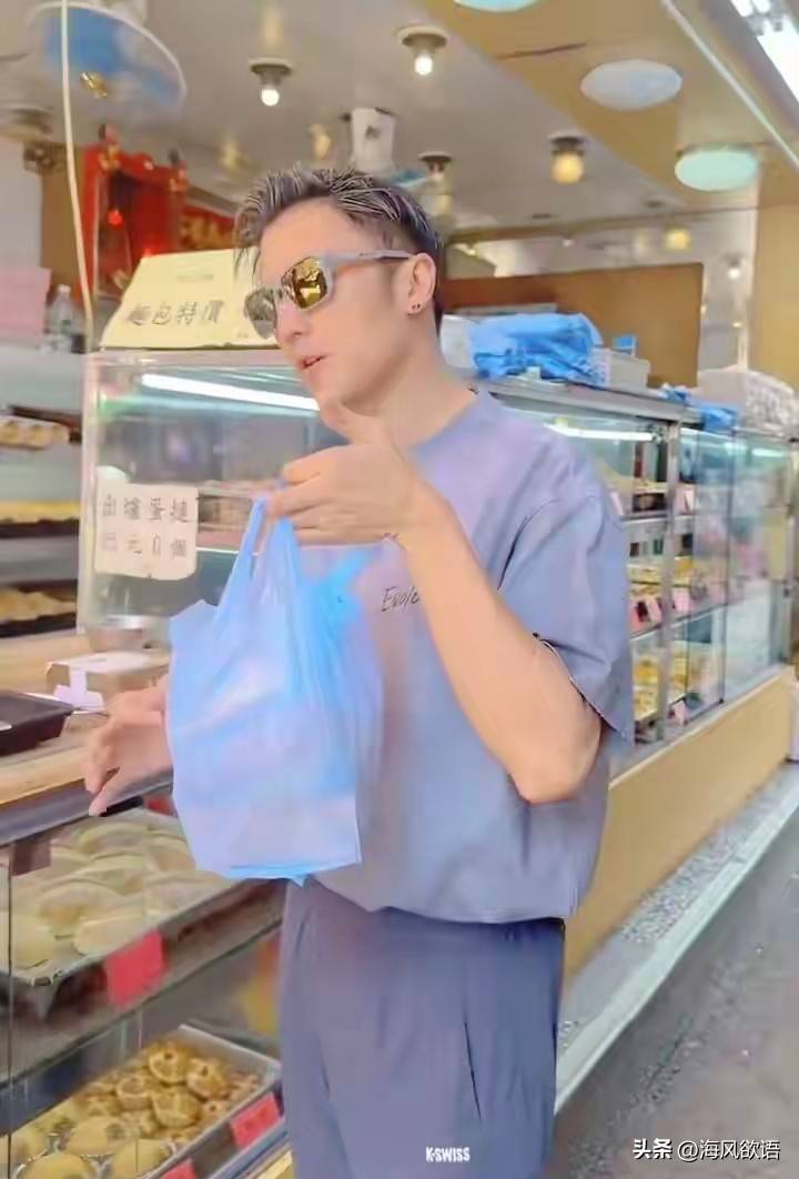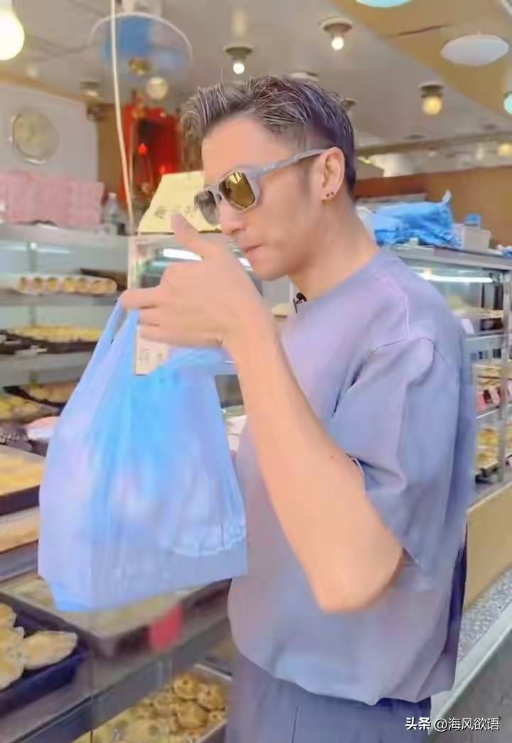 视频里,谢霆锋穿得特低调,简单的休闲服饰,正低头认真挑糕点,完全没端明星架子。