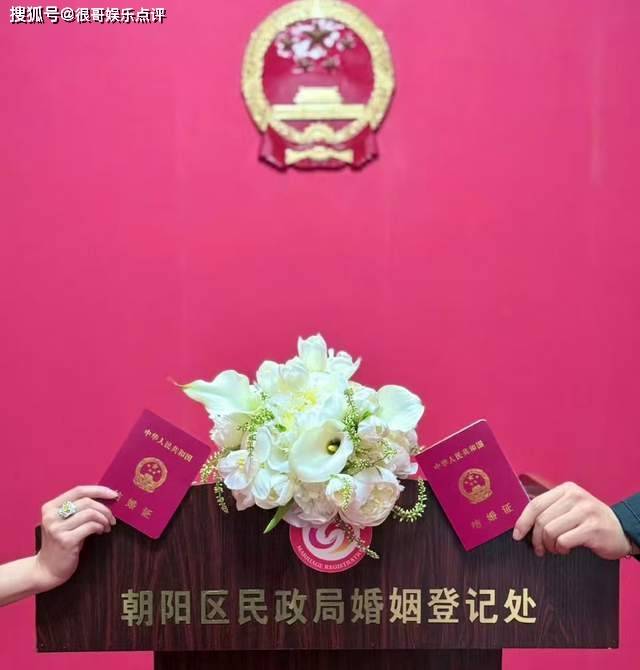 照片里没有航拍镜头,没有豪华布景,只有朝阳区民政局的玻璃门当背景板——李纯举着红喜字的手没戴夸张首饰,只有那枚黄钻玫瑰戒指在镜头里闪着光;马頔侧头凑向她的弧度自然得像排练过千百次,连耳后的碎发都透着松弛感。