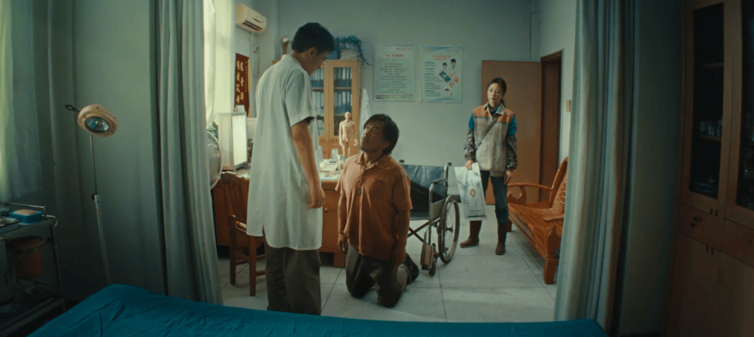 父子躲进洗手间被误会的桥段好笑、给医生两次下跪的画面好笑、沉迷于江湖走不出来的老四父子好笑,夜宵摊那段身份错位,是全片稍微强调戏剧性但也很符合常情的爆笑段落。