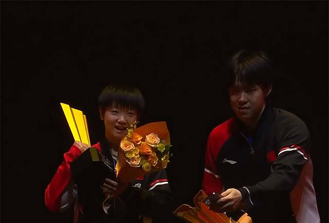 然而,颁奖仪式上的情景却让孙颖莎感受到了不小的挑战。在站在领奖台四人的选手中,身材高大的陈熠让孙颖莎显得格外娇小。举着沉重又庞大的冠军奖杯的她,如同一名小学生在高中班级中获得荣誉,一时间场面让人忍俊不禁。虽然此次孙颖莎没有同时参加三项赛事,但她在当天的比赛中与王艺迪展开了激烈的七局鏖战,体力的消耗极为显著。以她的小巧身躯单手举起那个巨大的奖杯,无疑是一项艰巨的任务。
