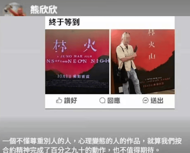 与此同时,知名动作指导熊欣欣还公开炮轰《风林火山》,矛头直指导演麦浚龙,怒斥他心理变态,不懂得尊重别人。