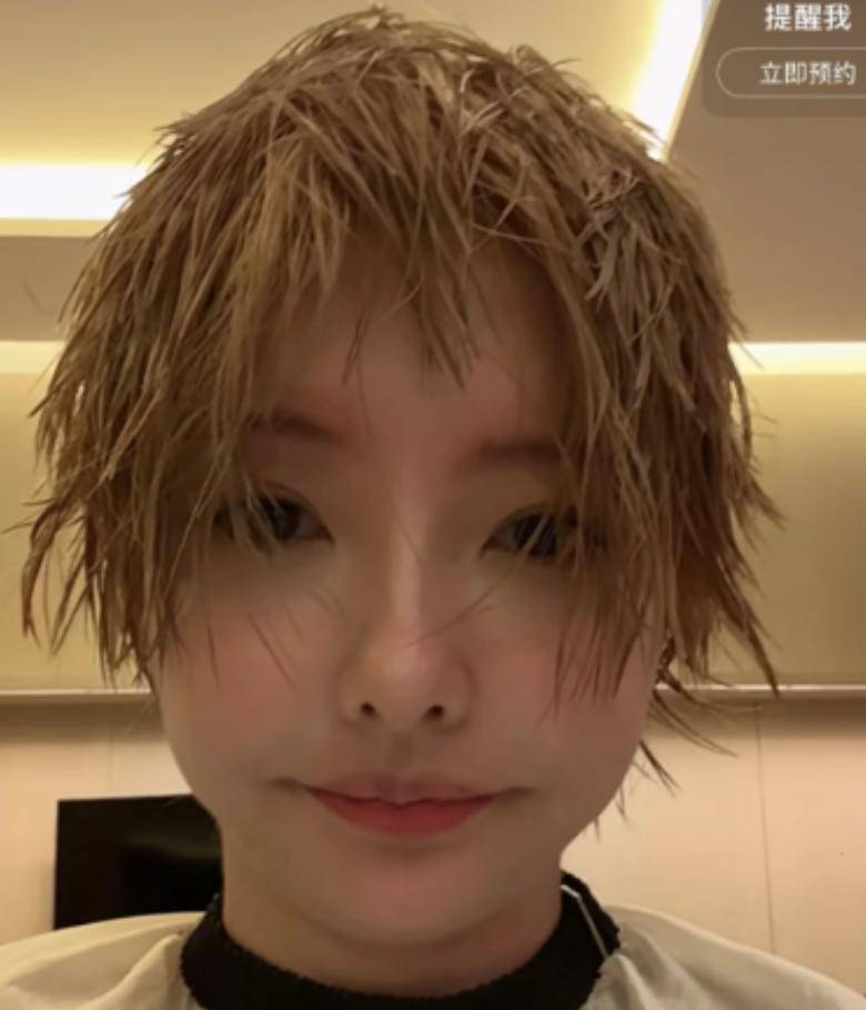 虽然她剪了短发后仍然是美女,但真的看不出来任何美女的氛围感和气质,头发还软塌塌的贴在脸上,和她圆嘟嘟的脸没有任何匹配度。