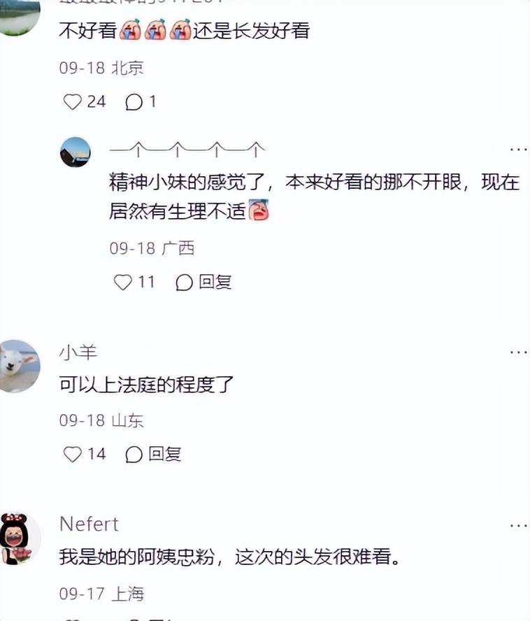 豆得儿换了新短发造型后被嘲得很惨,不少网友直言她风格不伦不类。
