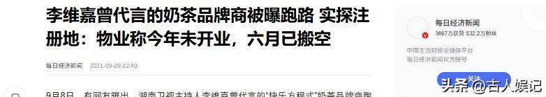 每日经济新闻网——李维嘉曾代言的奶茶品牌商被曝跑路 实探注册地:物业称今年未开业,六月已搬空