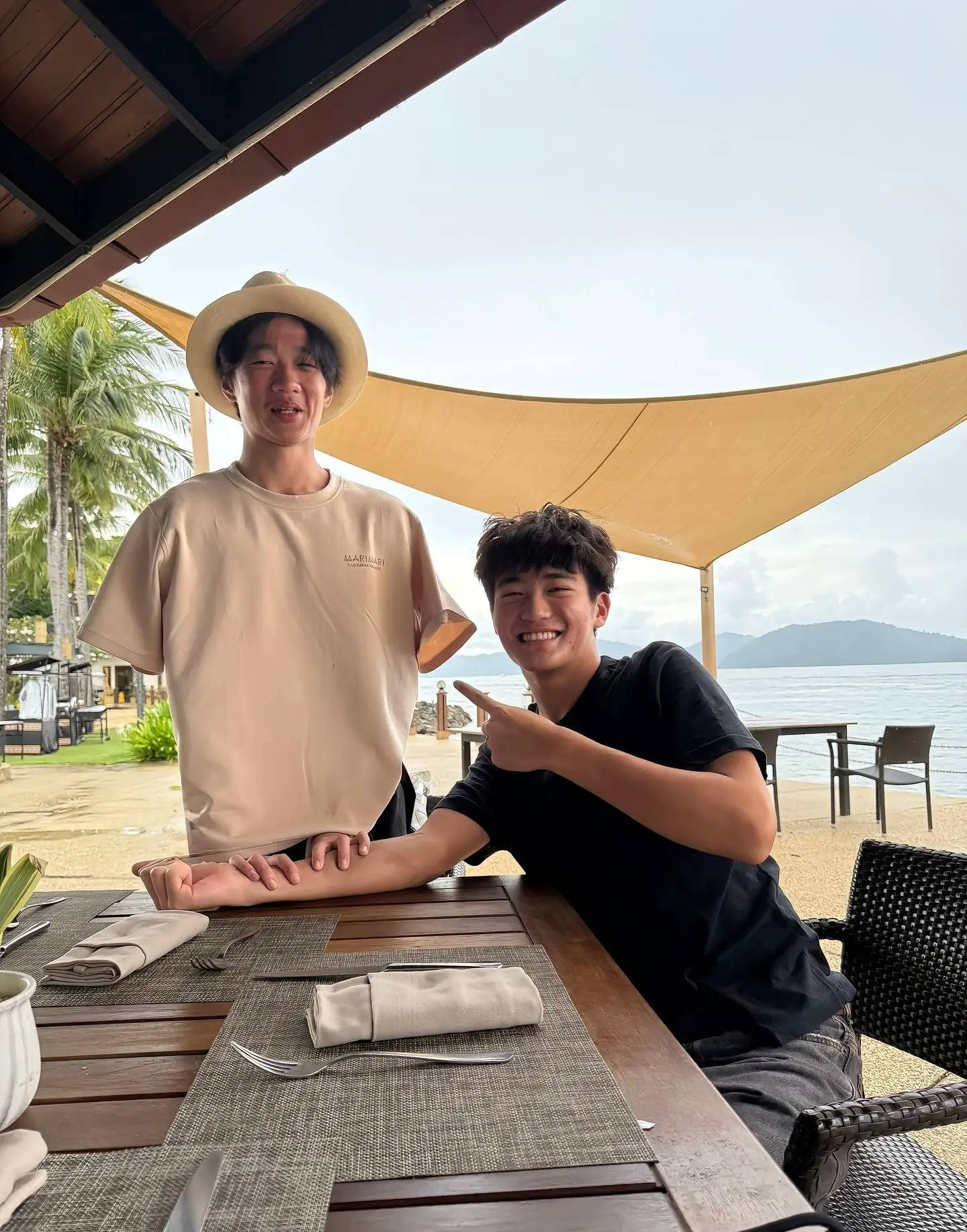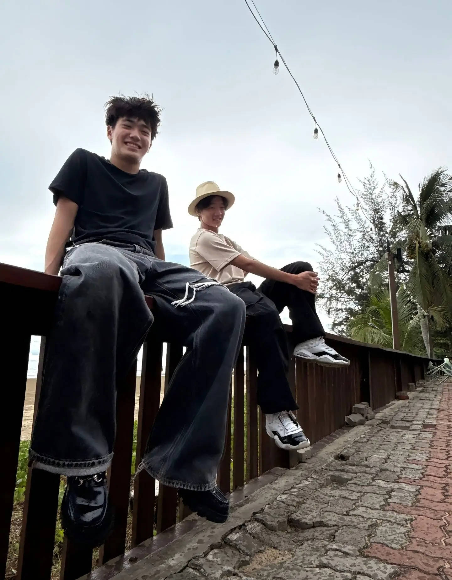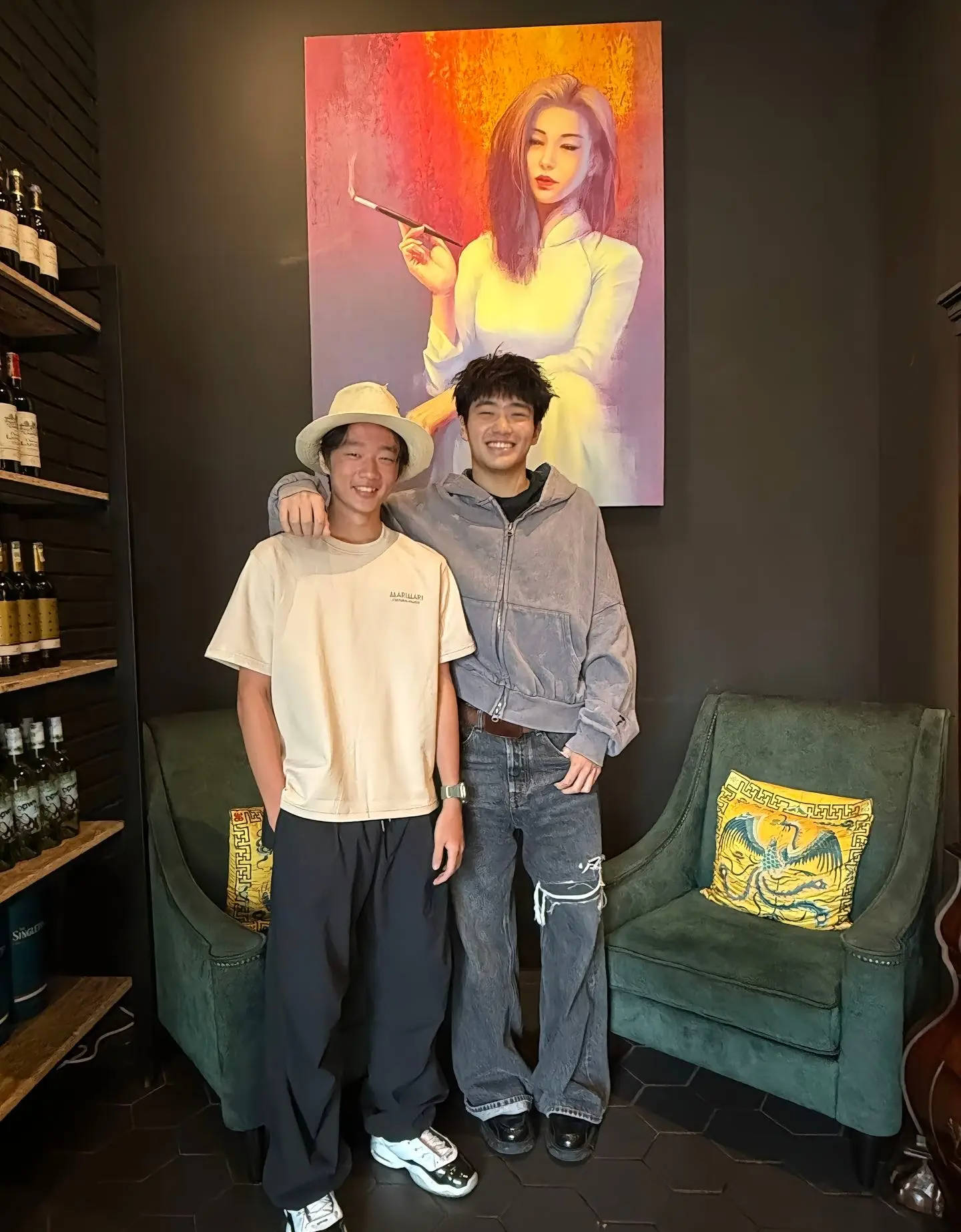 Joe将手搭在杨阳洋的肩膀上拍照,兄弟俩感情超好。