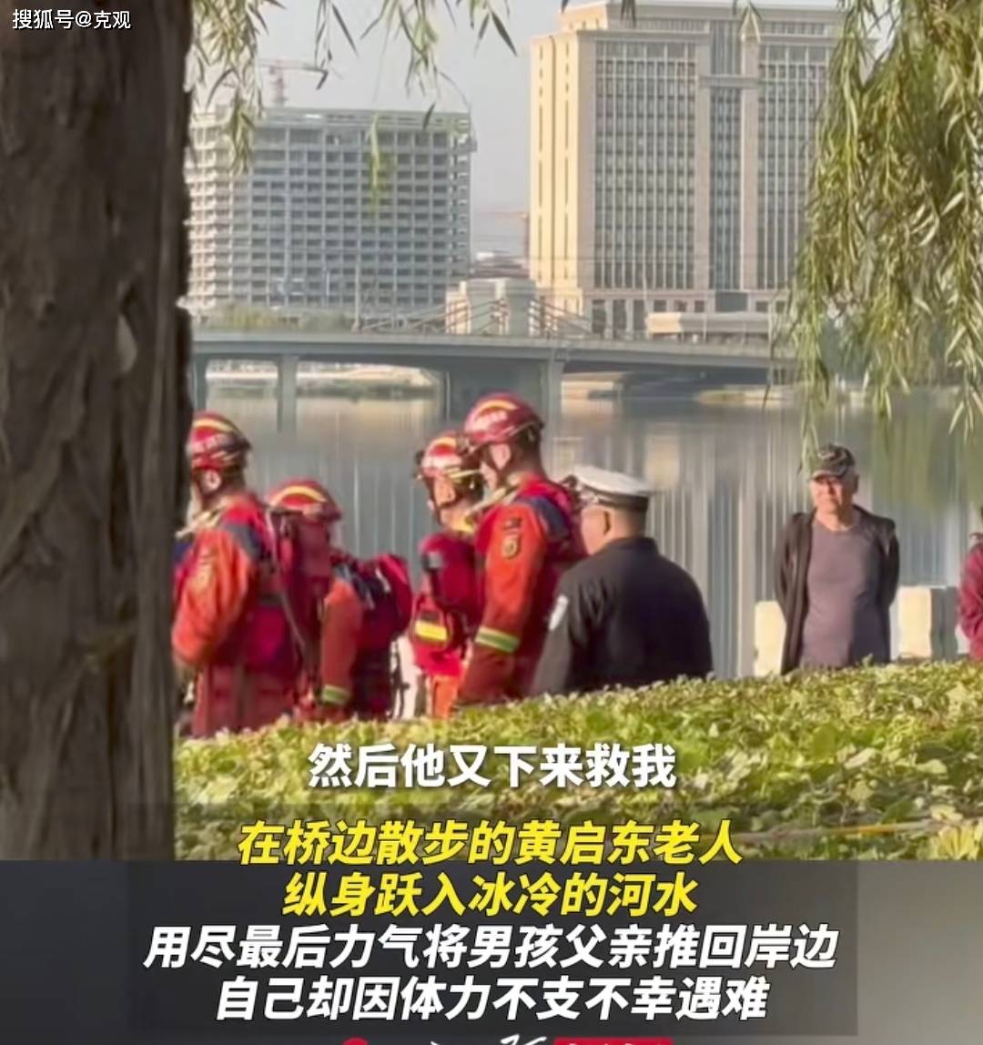 老人用自己的生命保护了落水父子的生命,自己却永远离开了。