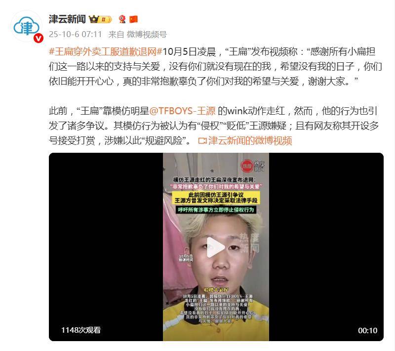 回顾王扁的“退场前奏”,可谓戏码十足。9月24日,他曾高调宣布“暂停模仿王源,回归外卖工作”,当时就被质疑是为规避侵权风险的缓兵之计。要知道,那会儿他的账号在30天内疯狂涨粉超过19万,一条视频报价高达20至40元,正是流量变现的黄金期。