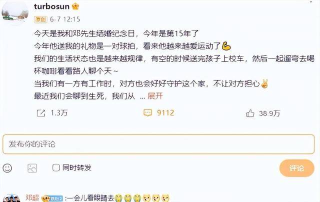 6有7日,也就是邓超和孙俪的结婚15周年纪念日,孙俪特意发长文表白:“我和邓超会在上海慢慢变老,共同守护好这个家。”