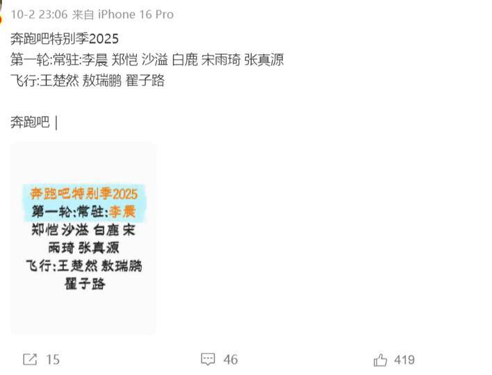 读者朋友们,看见这份传闻中的录制名单后,你们对本季的节目还有哪些期待?愿新一季的奔跑吧在稳妥的筹备中继续前行,带给观众更多欢乐与感动,也愿每一位参与者在事业与生活中取得更优异的成绩,拥抱光明未来。愿节目越办越好,愿你们在追寻梦想的路上始终保持热情与乐观,迎来更加灿烂的明天。
