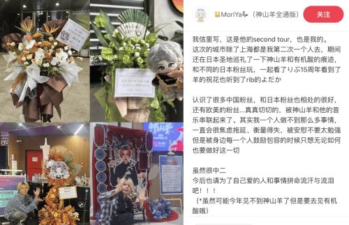 互动环节中,神山羊展现出对中国观众的重视。从“大家开心吗?有想我吗?”到“请大家尽情享受舞台”,甚至在每一站还会学习地方方言,每句真诚的尝试都引来观众热烈回应。演出间隙,台下观众则会以日语高喊“kawaii”、“kakoyii”,这种跨越语言的对话,成为演出中独特的温暖瞬间。粉丝们制作的祝花和现场交换的“无料”,更将这种联结延伸到演出之外,让音乐成为连接彼此的纽带。