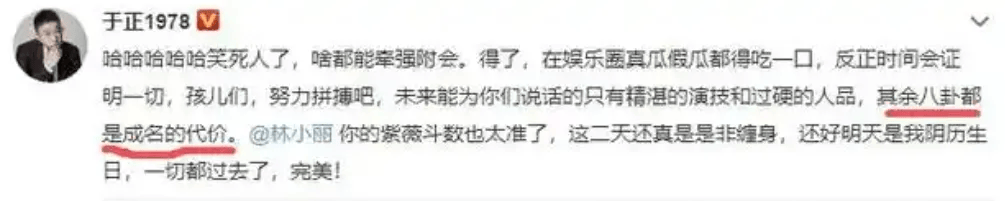 于正也紧随其后,还感叹这都是成名的代价。