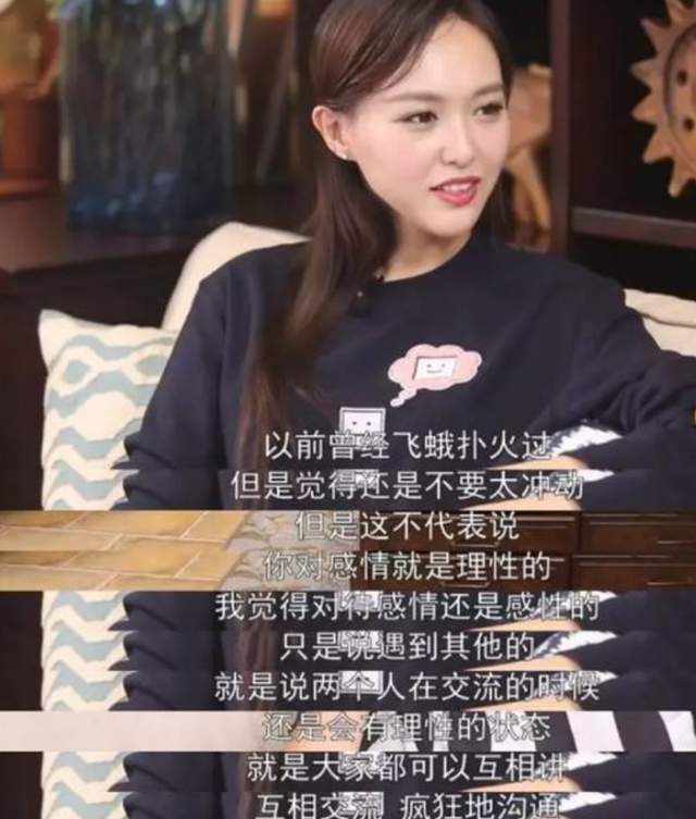 早期采访,唐嫣透露她对感情理性又感性,希望两个人能够理性交流,疯狂沟通。