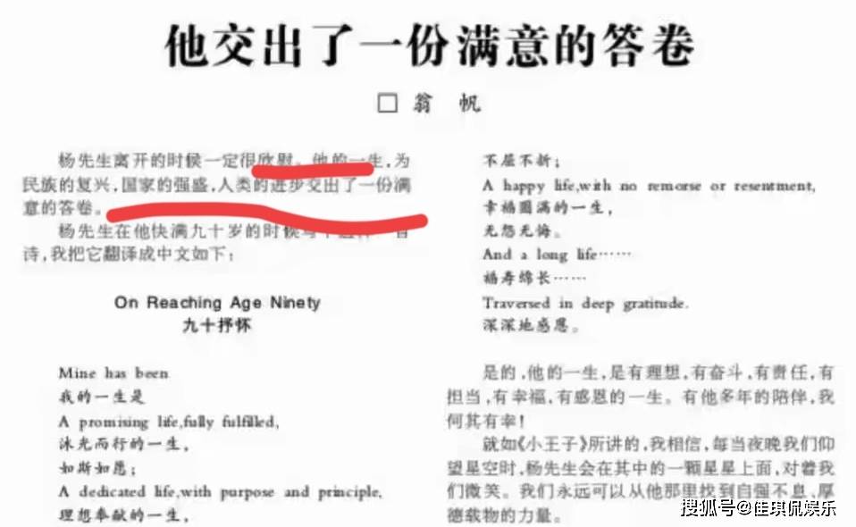 短短25个字,却总结了杨振宁的一生,铿锵有力,字字珠玑,每一个字都是对他的肯定,对那些质疑声的回击,翁帆笔下的杨振宁是令人敬佩的,值的被尊重的