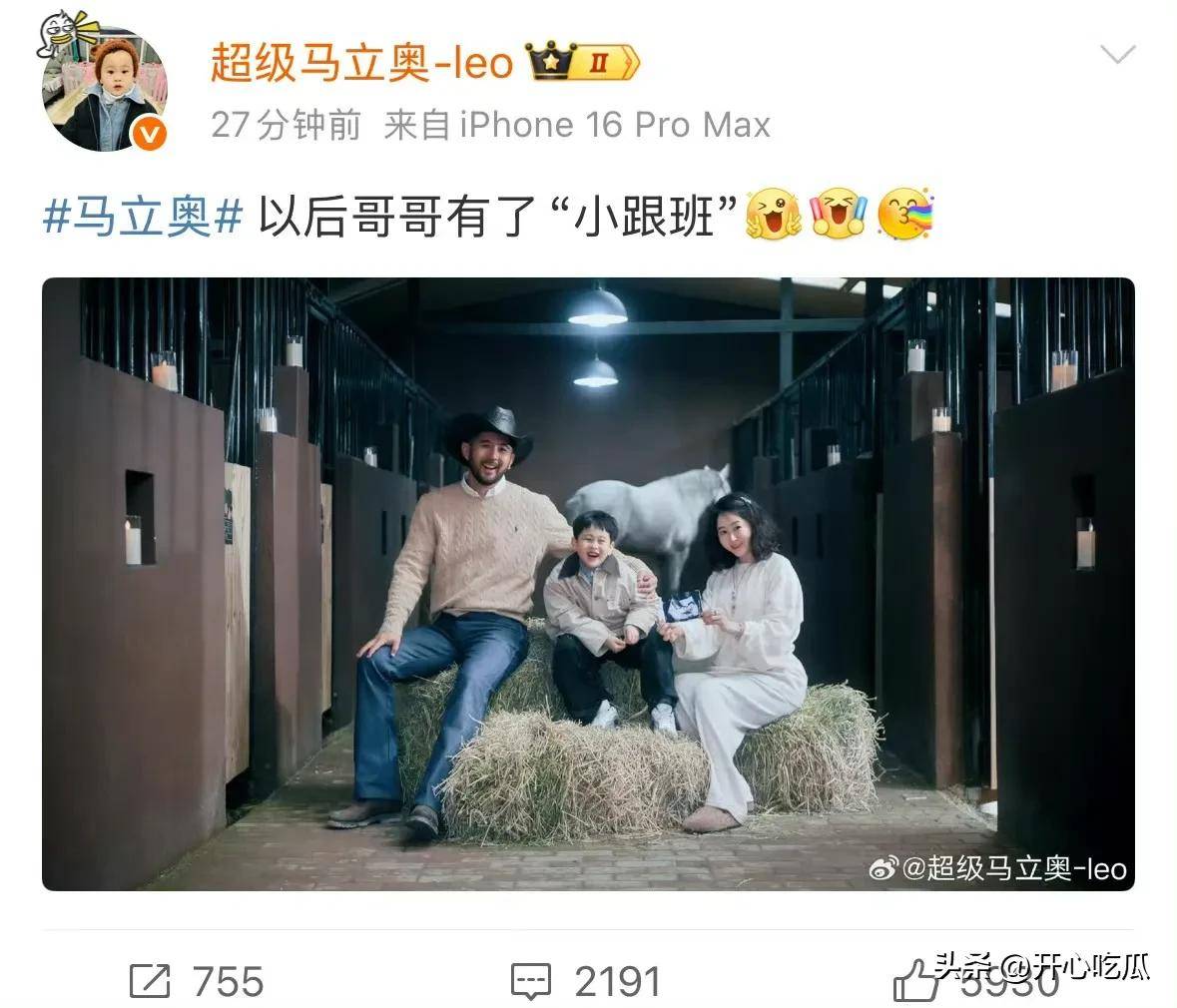 全网送上祝福,网友称赞“松子(马立奥昵称)一定会是好哥哥”,并期待“儿女双全”(马家希望二胎是女儿)。