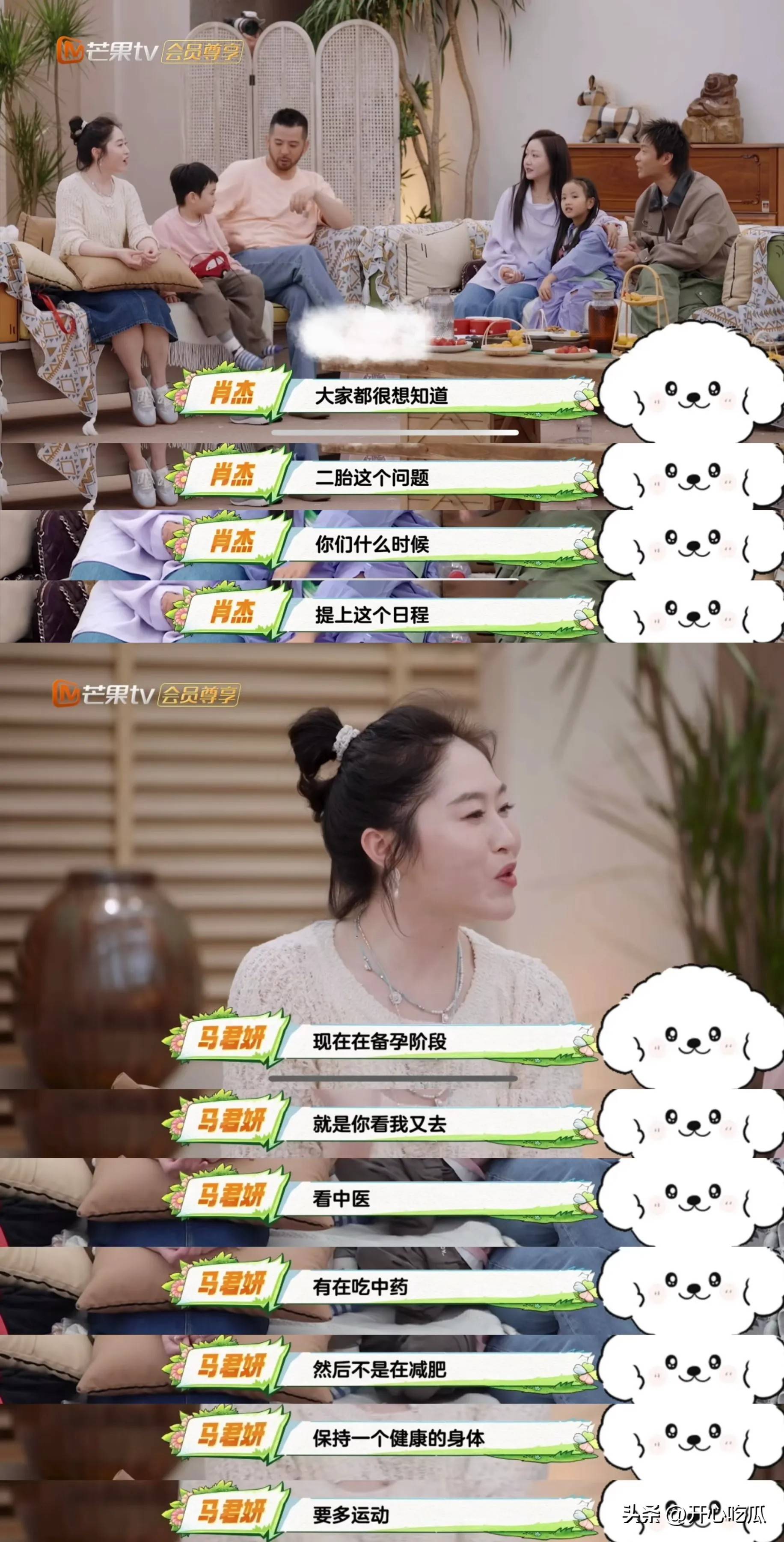 在今年五月份的综艺里,君妍姐透露过在备孕二胎:“现在在备孕阶段,就是你看我又去看中医,有在吃中药,然后不是在减肥,保持一个健康的身体,要多运动。”