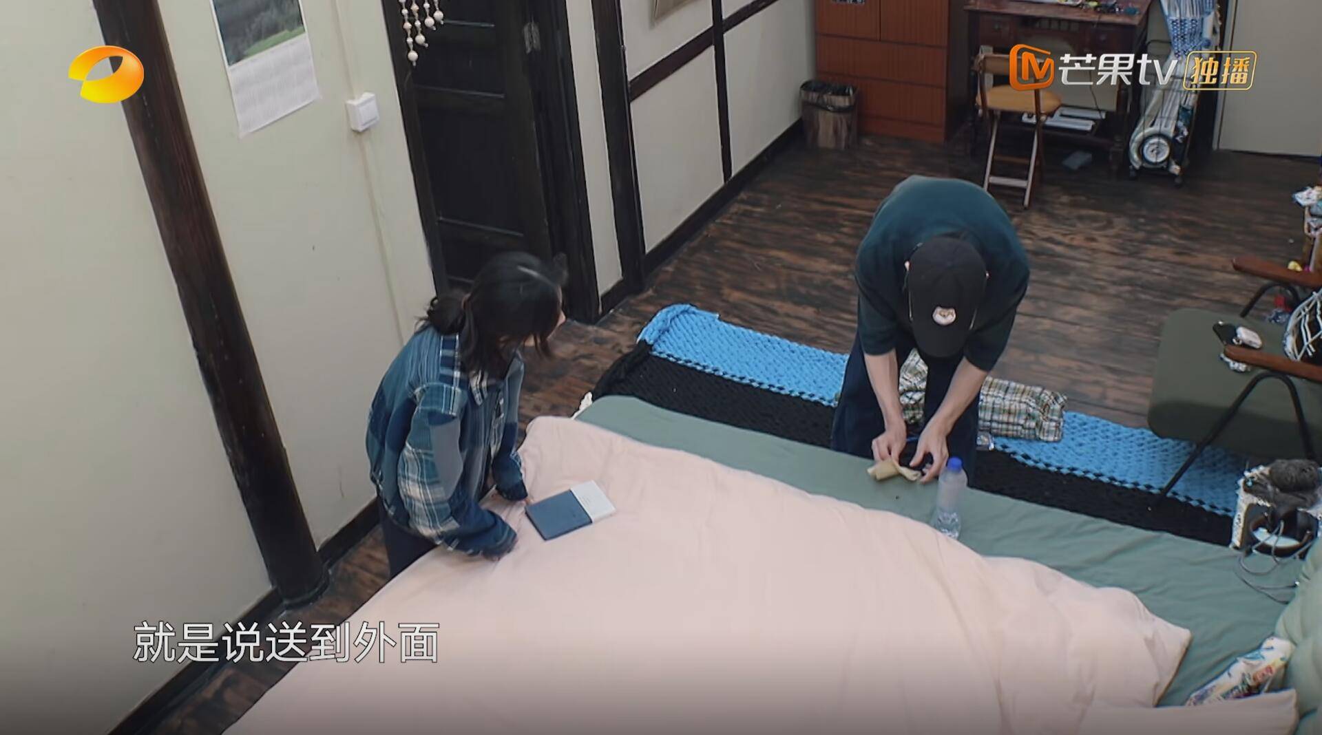 在张子枫收拾床的时候看到了一只苍蝇。