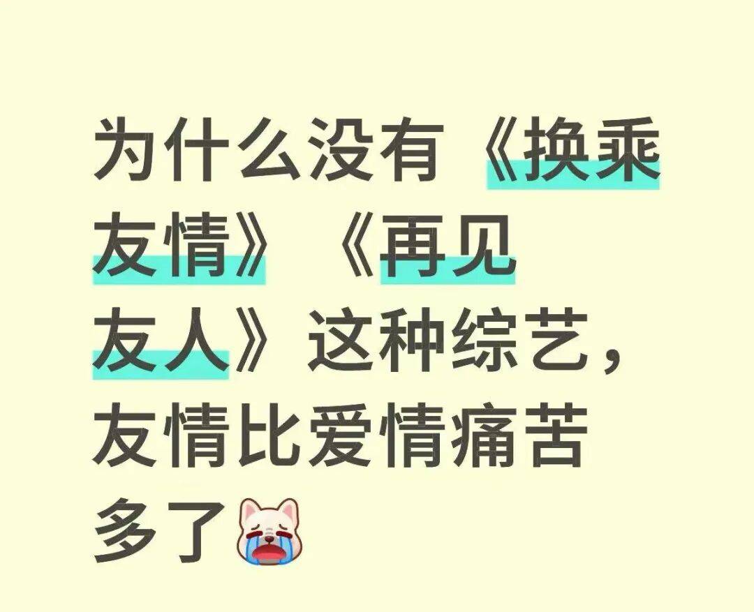 当初《再见爱人》播的热度正高,然后观众突发奇想问为什么不能有《再见友人》这样的节目?