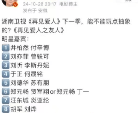 网传芒果台《再见朋友》已经过企划会了,现在就等着成型之后拟定嘉宾呢。