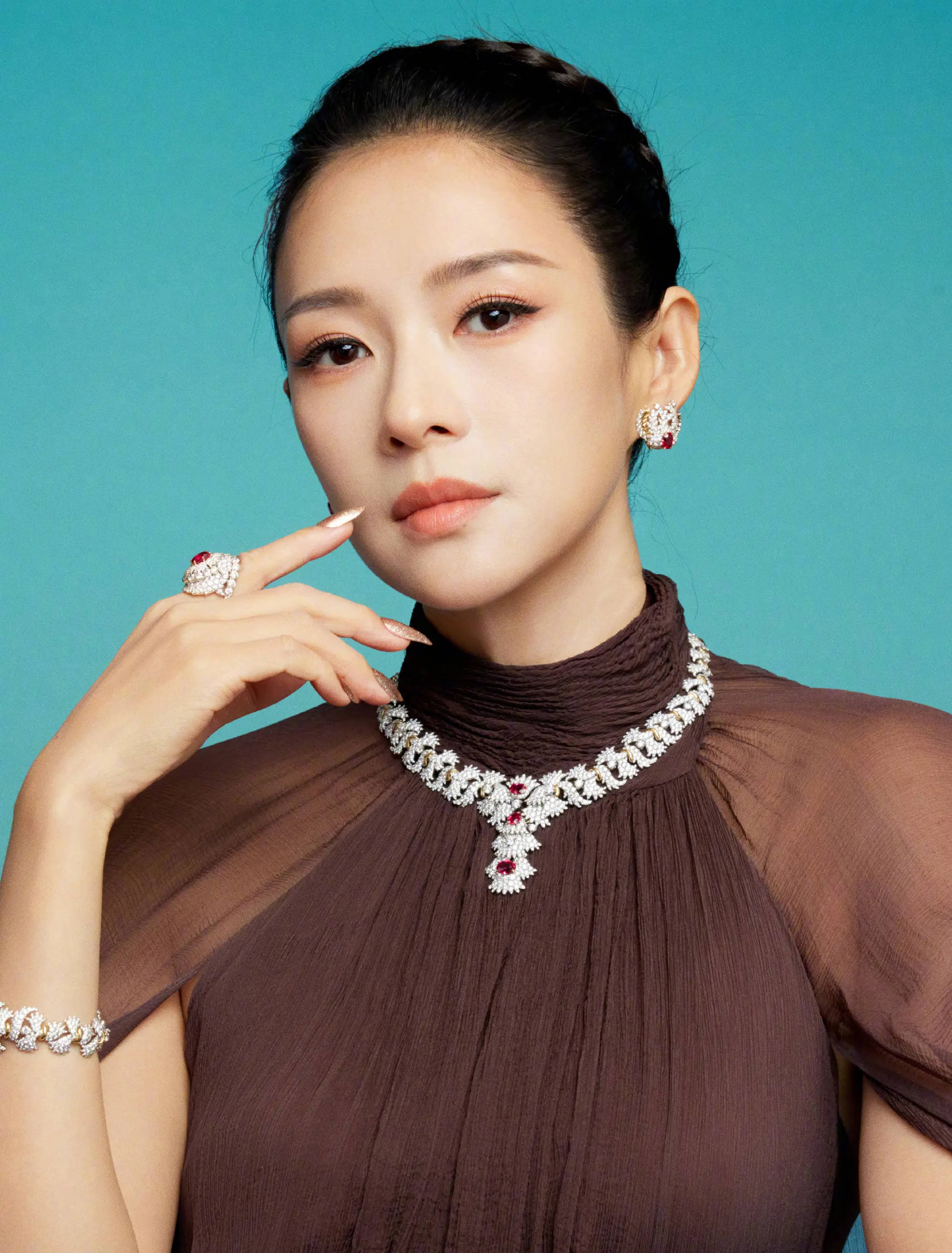 章子怡戴华丽首饰好美,有种雍容华贵的既视感。