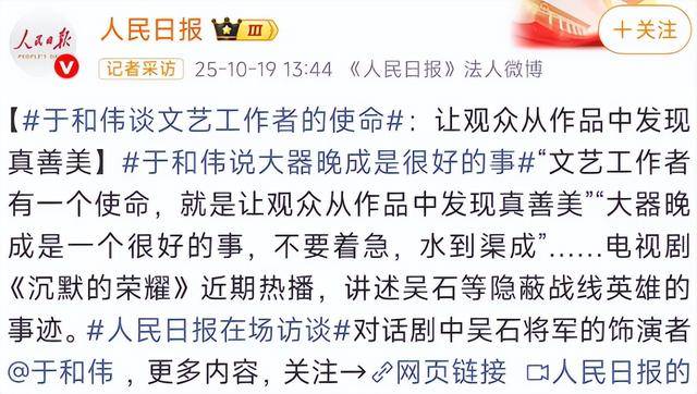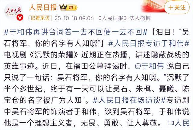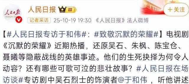 今年国庆期间,于和伟凭借新剧《沉默的荣耀》,瞬间引爆全网。不管是微博热搜、朋友圈还是短视频平台,到处都在聊这部剧。