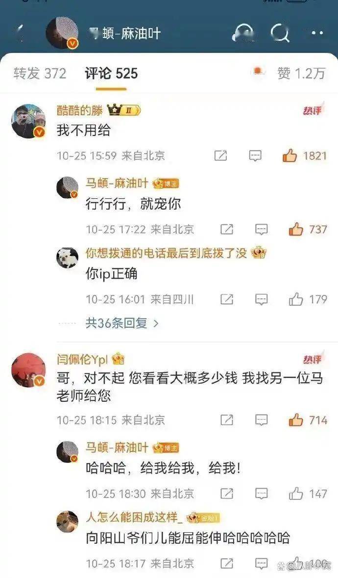此次事件的亮点在于娱乐化的回应逻辑,马頔并未真的要求支付版权费,而是通过“收版权费”的说法,调侃自己梗的高传播度,同时保持了一贯的“北京爷们”直爽风格;闫佩伦以“找马东”的回应,延续了两人的“互怼”默契,既承认了模仿的事实,又避免了可能的尴尬;评论区满是“别收,爷们儿要脸”“苟富贵”等调侃,马頔则以“必相忘”回应,形成了“梗-回应-再玩梗”的良性循环。
