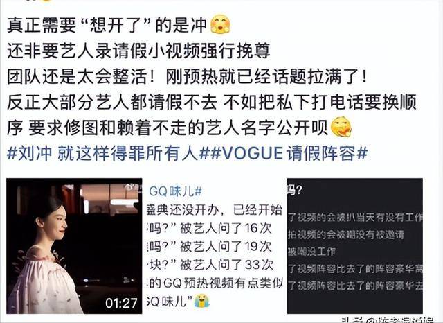 但其实或许只是网友过度解读了,刘冲发文和明星发请假视频,也都是想要告知关注这场活动的人,告诉他们那些明星不来了,不来也只是有事情,并不是发生了什么矛盾。