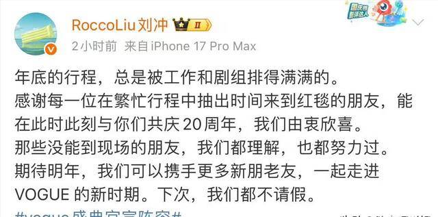 但刘冲应该也没意识到这些明星的请假视频会引起这么大轰动,因为他在明星发完视频之后,也发文了。