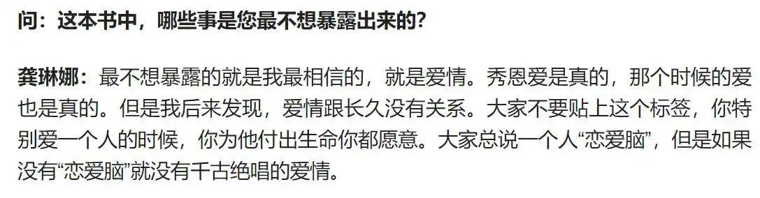 后来龚琳娜才发现,以前的甜蜜是真的,但爱情和长久并不一定挂钩。