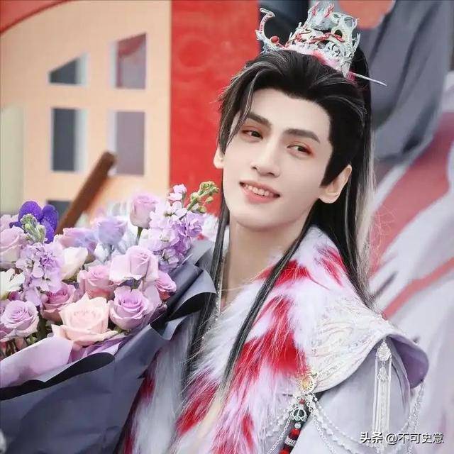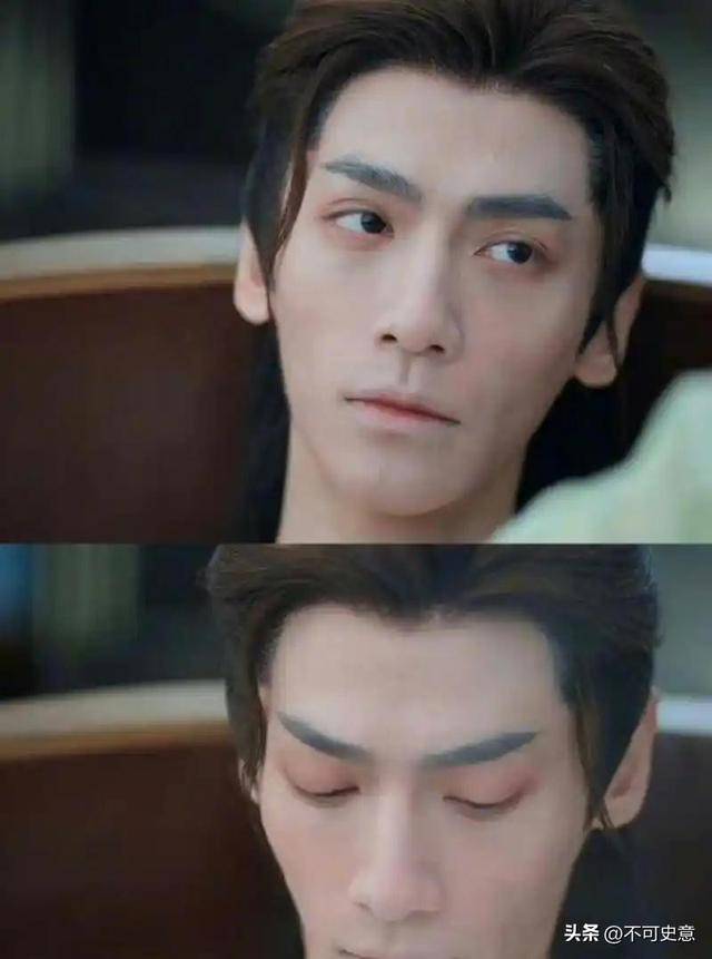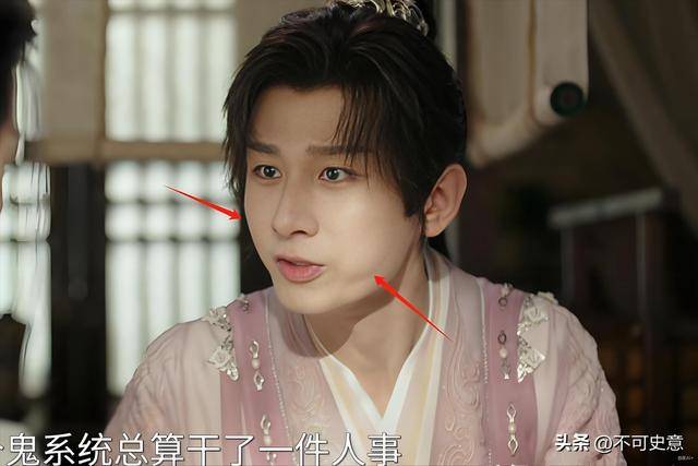 就算抛开妆造,单看五官,他的脸部线条比较平整,眼睛不算大,嘴巴还总像微微撅着,实在算不上传统认知里的古装美男。