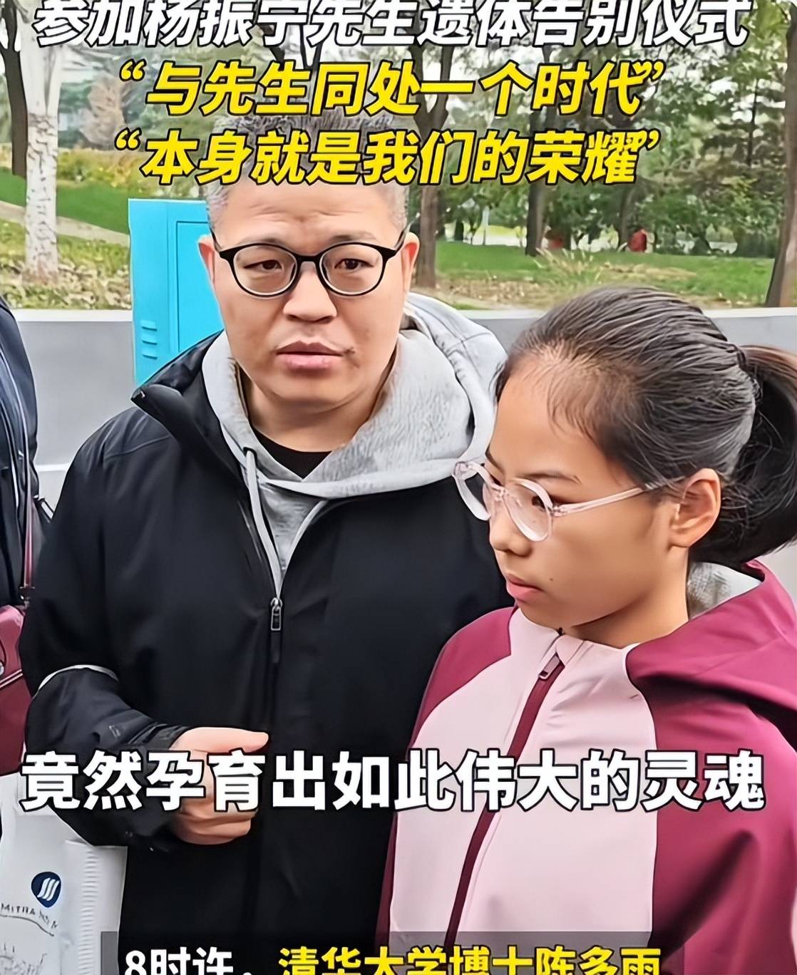 还有一位清华大学博士把他的女儿也带过来,一同送别杨振宁,用了很多词表达对他的感念和崇拜。