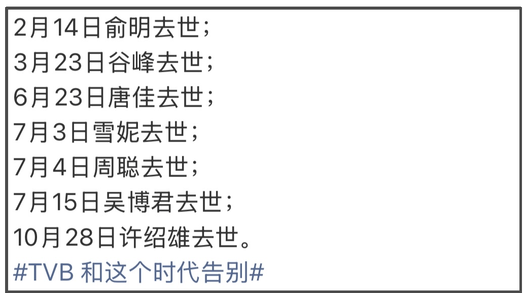 7月份,92岁演员周聪因为肺炎去世,他是TVB的御用爷爷,因出演《溏心风暴》被大家熟知。