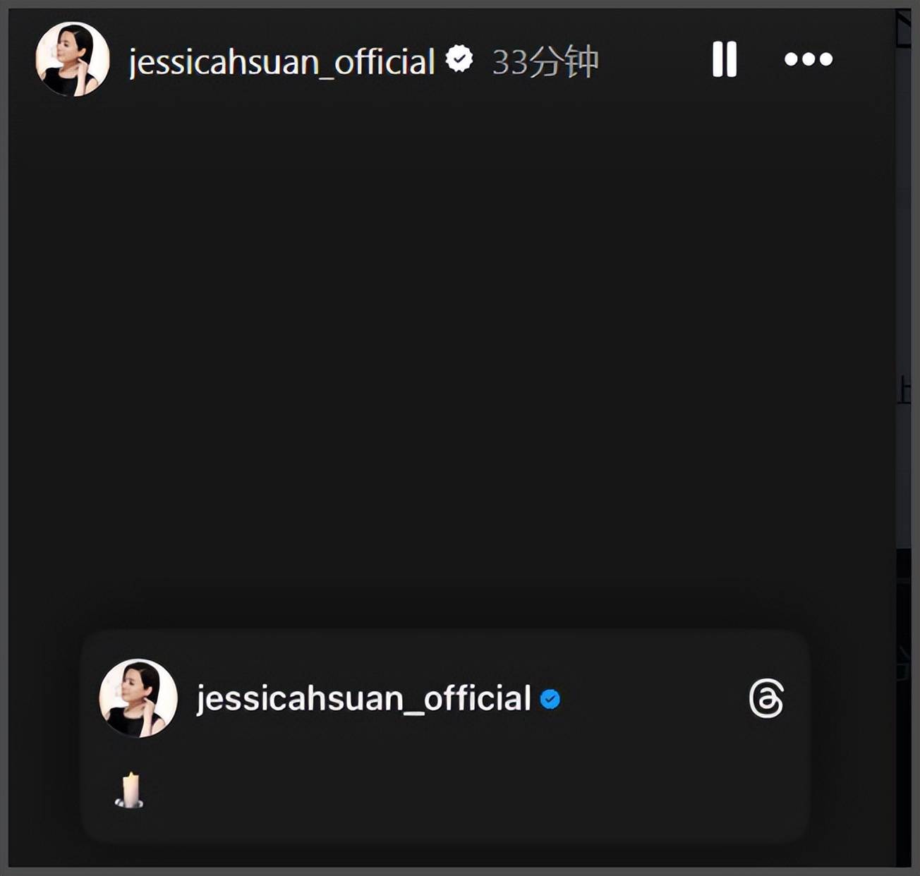 宣萱则直接晒出黑屏和蜡烛悼念,两人曾合作过《使徒行者2》。