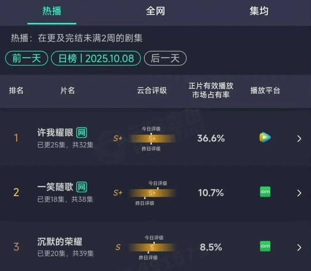 这部剧自9月26日空降开播,无宣发、无预热,首日播放热度突破2.7万。整个十一长假,播出数据断层第一,单日最高市占率达到37.9%。