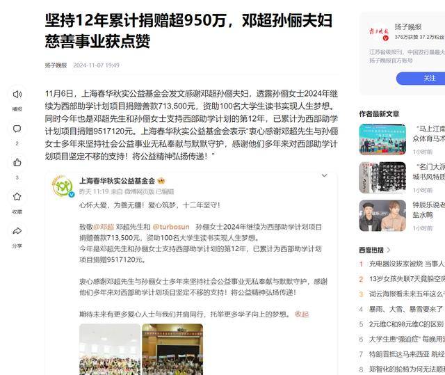 更令人欣慰的是,即使被白眼狼反咬一口,但是孙俪这些年始终没有放弃过对慈善的热情,依旧和丈夫邓超奔走上慈善的道路上。