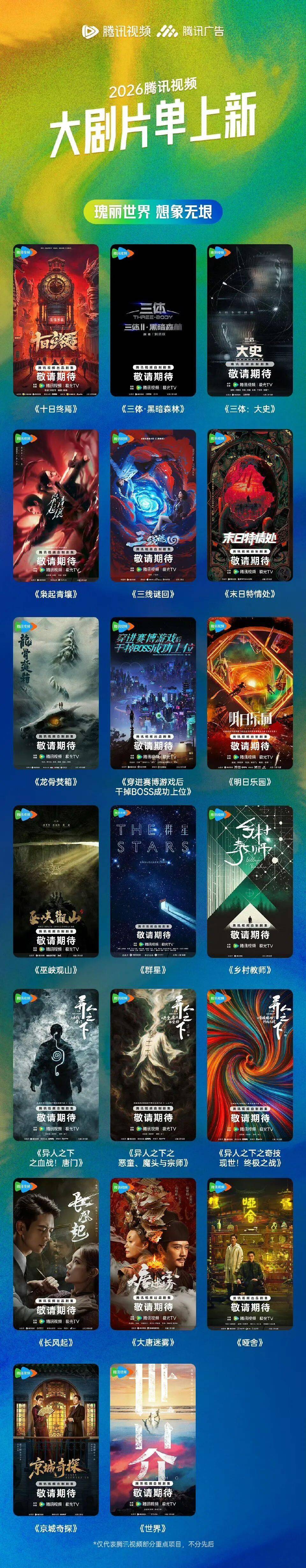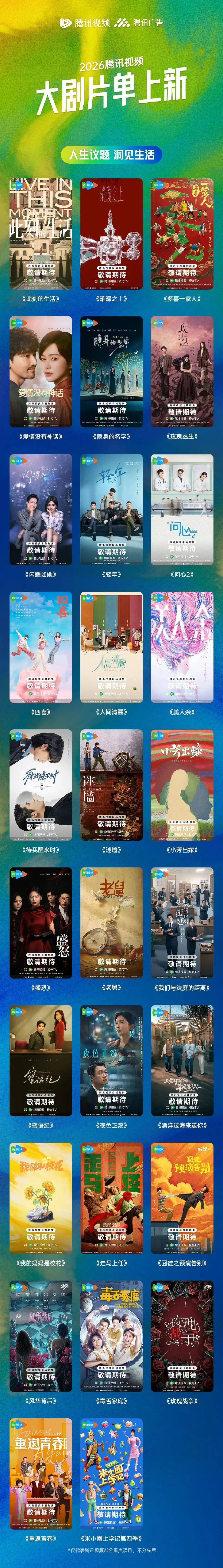 10月27日,鹅厂在“V视界大会”上发布了2026年大剧片单,其中有多部堪称大作的电视剧宣布了主演阵容,有多部剧集释放了新海报。