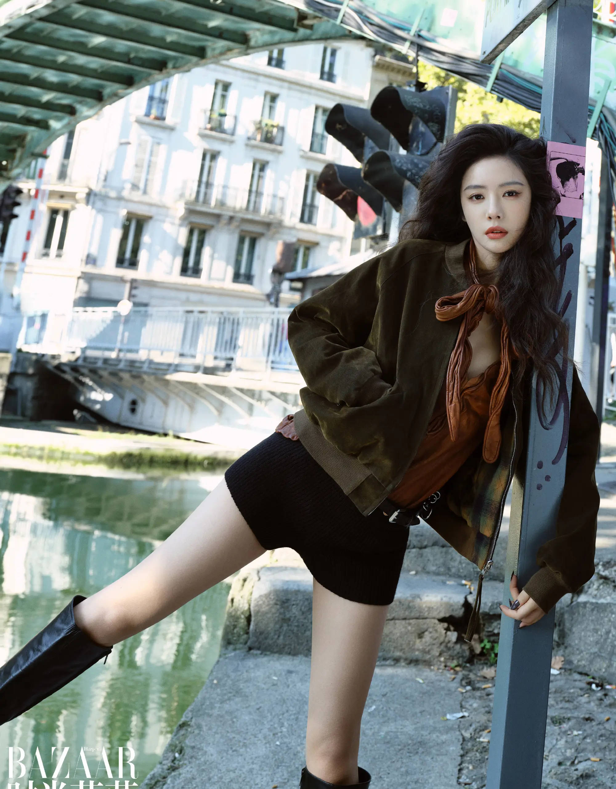 蔡文静漫步巴黎街头,风情万种。