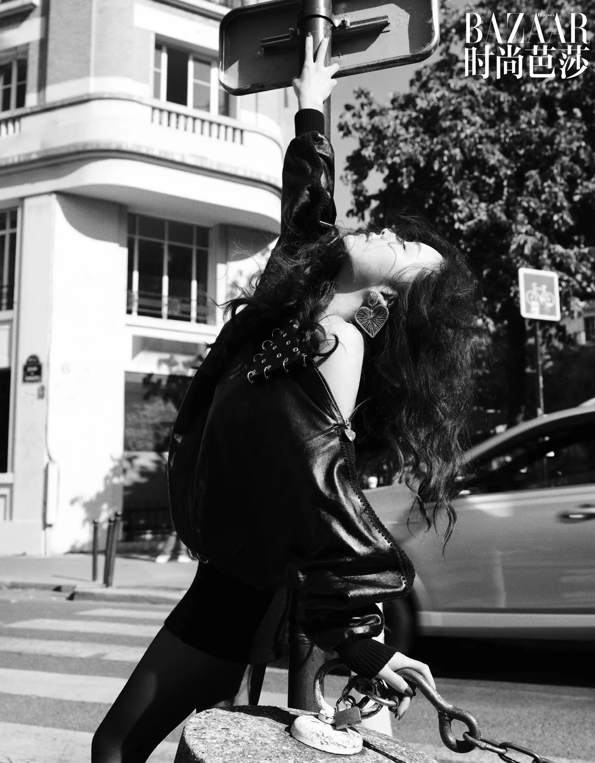 蔡文静在巴黎街边拍美照,松弛感十足。