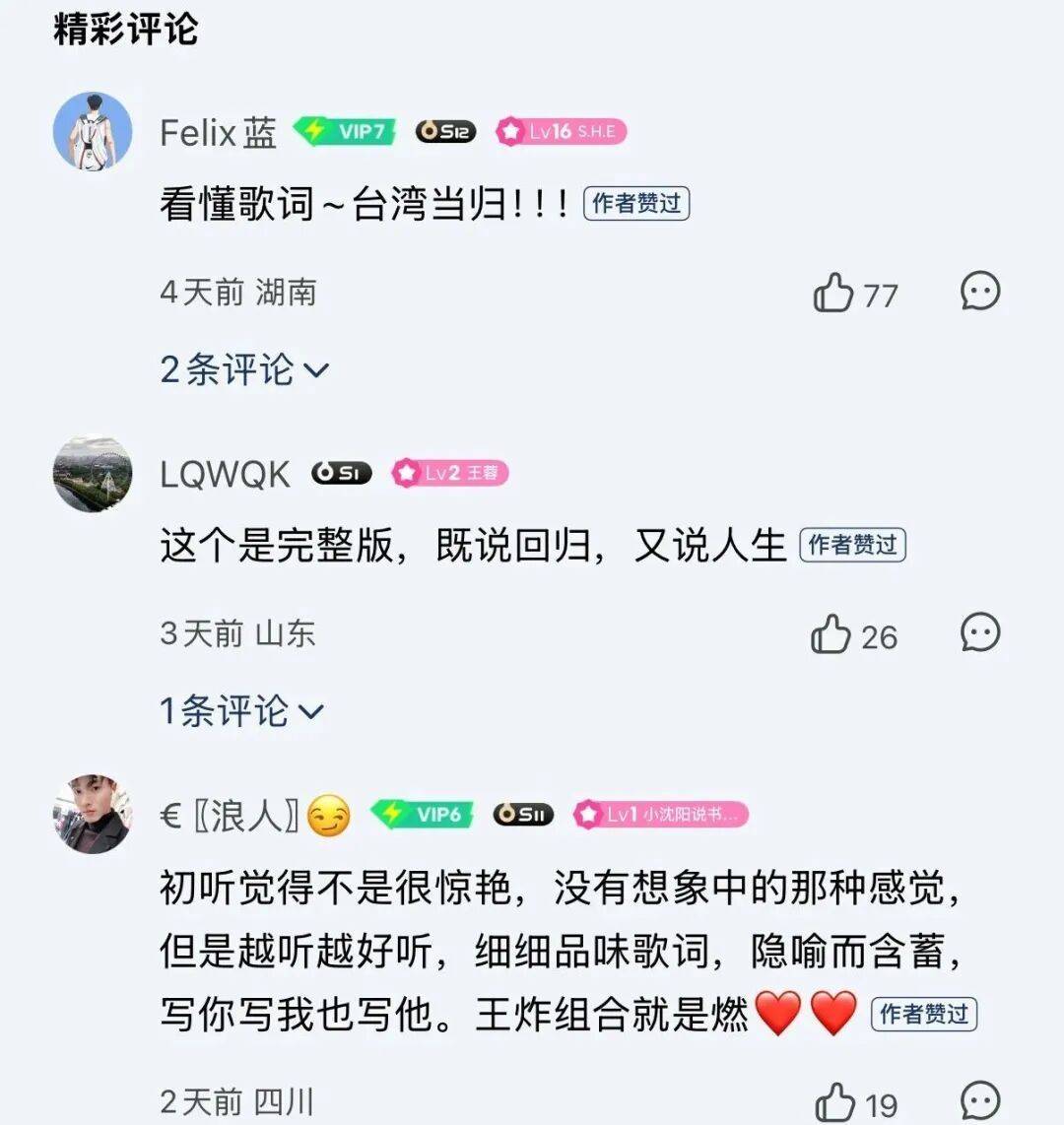 此外,《没出息》在王搏加长版、完整版、最终版增加了完整的段落、歌词,“你是谁的儿女至亲”、“乡音未改依旧很浓,忘却了家乡的面容”、“为你留了一盏灯”,再加上网友的二创、解读,也恰巧对上了台湾议题相关的社会情绪。