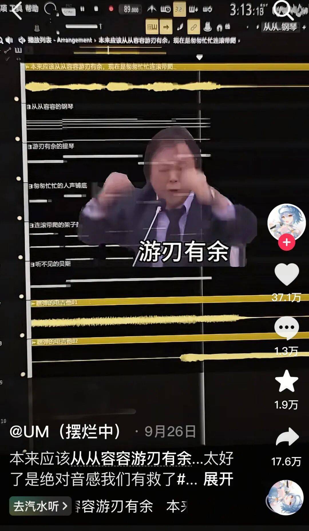 9月26日,博主UM(umrcumrc)以王世坚的这段演讲为素材,发布了一支短视频作品,不仅创下37.1万点赞的成绩,也让“没出息”从鬼畜素材向音乐改编的苗头进一步显现,演讲语调中的“绝对音感”被巧妙捕捉,为后续的热潮按下了预热键。