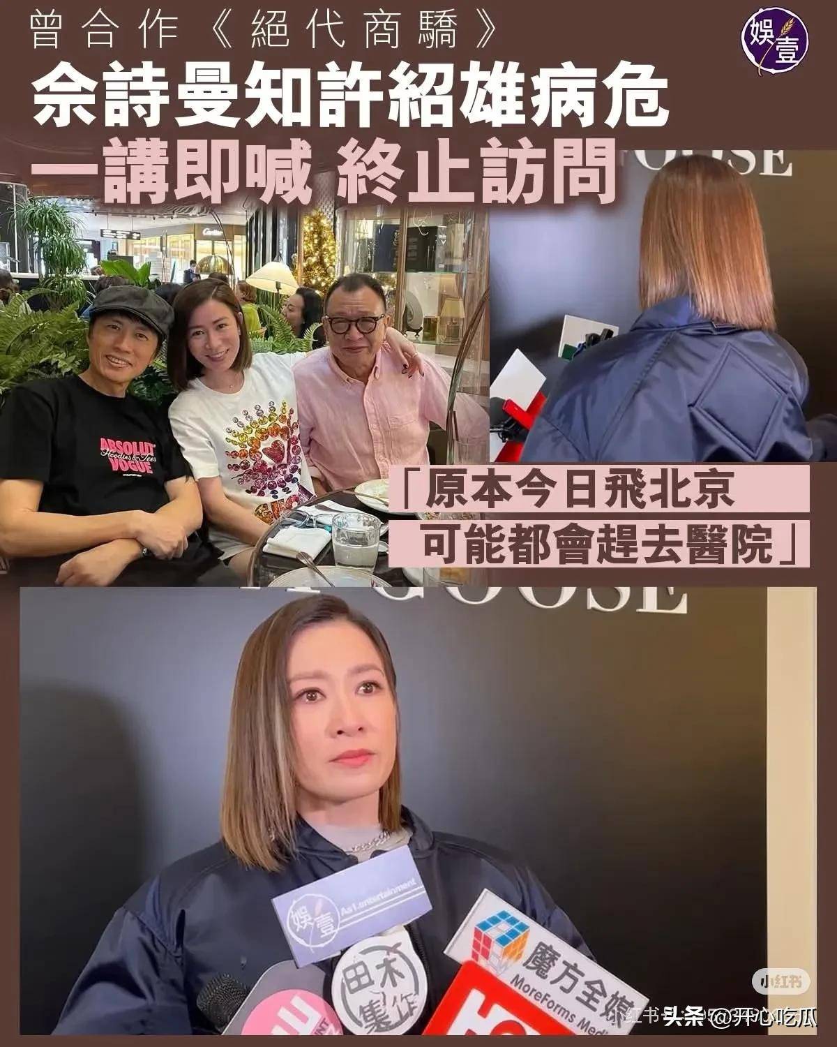 干爹许绍雄去世,佘诗曼忍痛现身,哭着说,将会照顾好干爹的家人。昨天,佘诗曼在澳门工作,接受采访时一向坚强的她也忍不住在镜头前哽咽流泪了,她说自己本来要飞去北京工作,但临时取消了行程,这个工作结束后立刻去医院看望干爹。