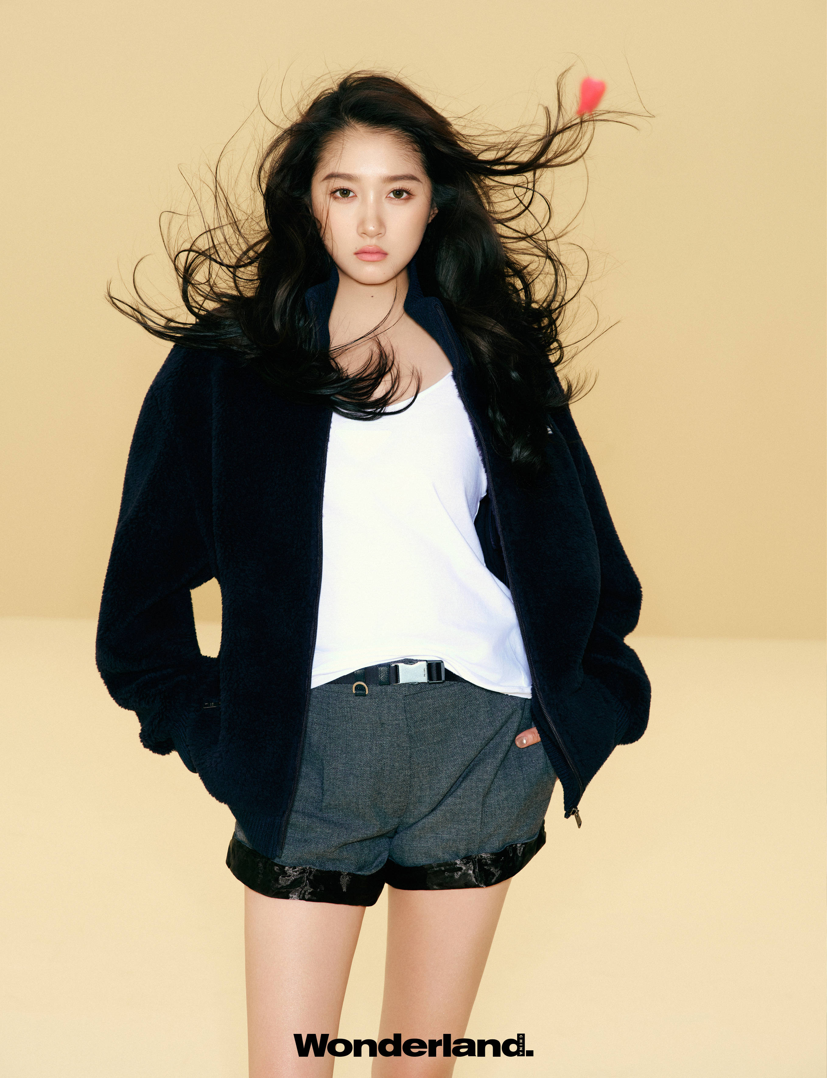 关晓彤双手插兜,随性干练。