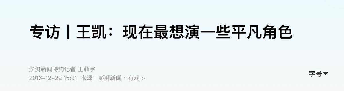 《专访丨王凯:现在最想演一些平凡角色》澎湃新闻
