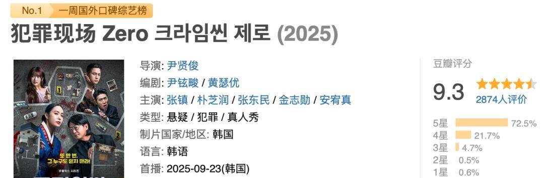 这,正是韩综经典之作《犯罪现场Zero》的开篇。多年后,这档被誉为“剧本杀综艺鼻祖”的节目,在Netflix的加持下,以更残酷、更烧脑的姿态重返荧屏。上线即引发口碑狂潮,评分高达9.3,观众纷纷惊叹:推理综艺的王者,回来了。