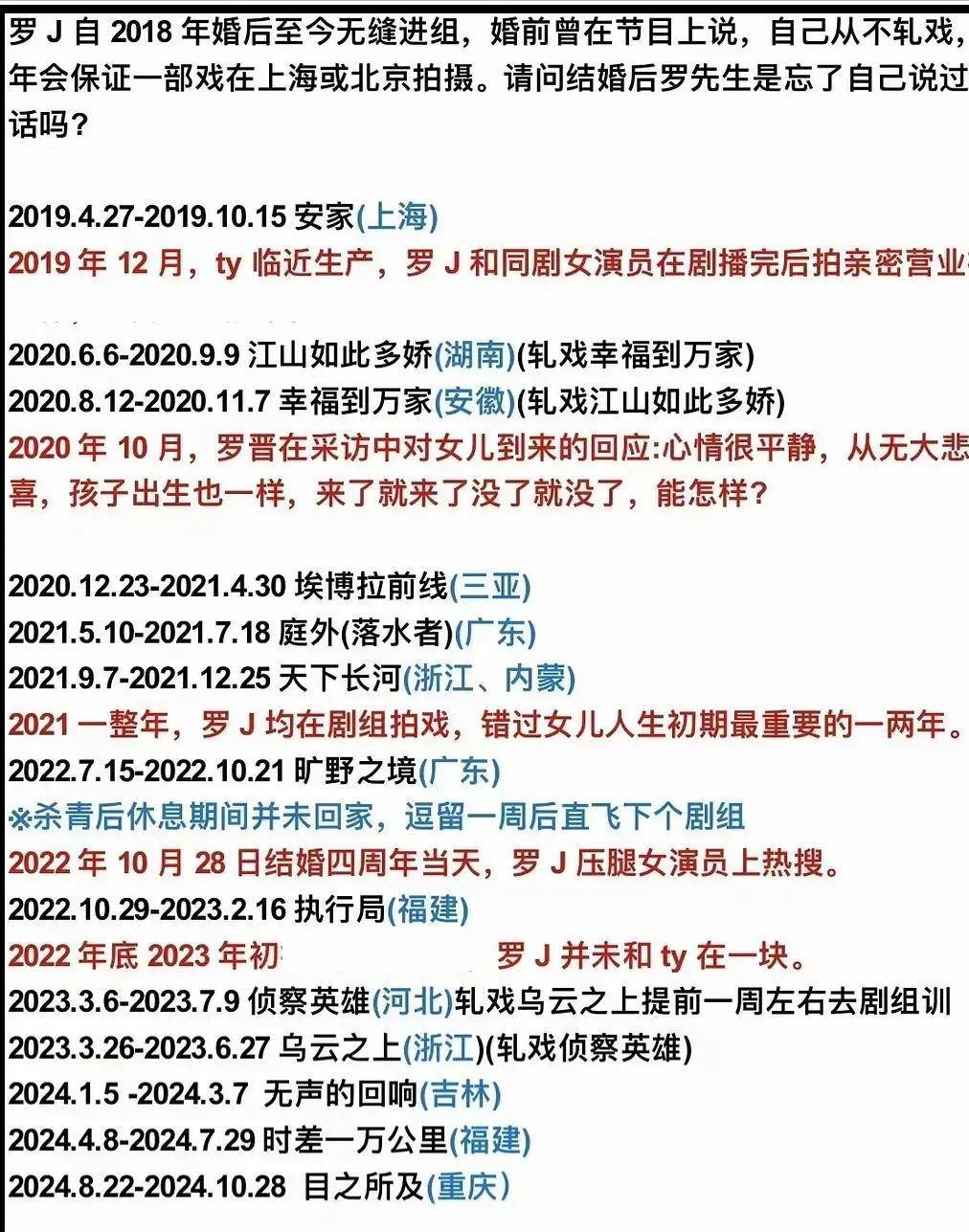 早在结婚前,罗晋曾表示婚后会在北京和上海拍戏,因为唐嫣常住这两个地方,但婚后实际情况却并非如此,从时间线来看,罗晋经常在外地拍摄,很少回家。