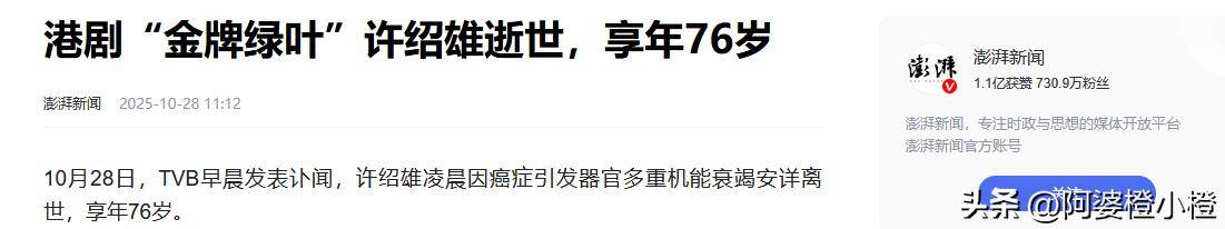 近日,一则“央媒发文悼念许绍雄”的消息悄然登上热搜,许多年轻网友一脸茫然。
